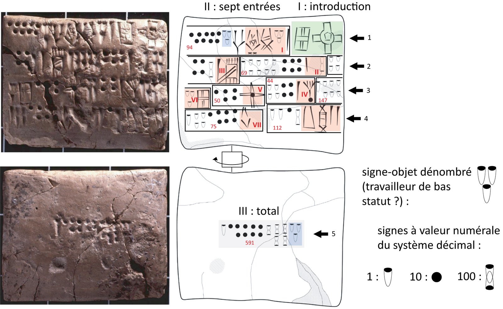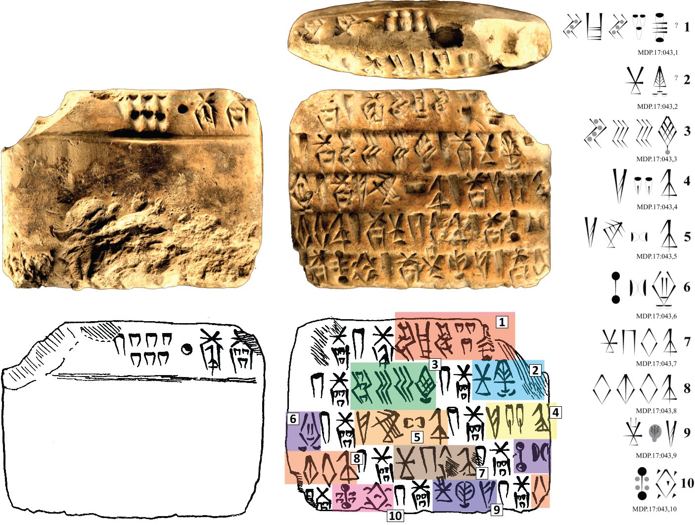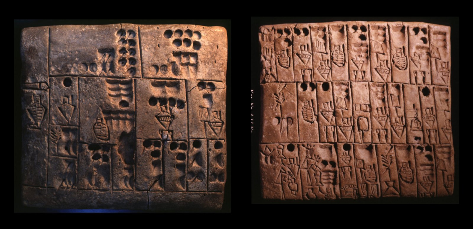Ce succès mis à part, le déchiffrement de l’écriture élamite linéaire a également permis de reconsidérer notre vision de l’évolution de l’écriture dans le monde. Avant de continuer, je dois faire ici un peu de théorie. Tous les systèmes d’écriture fonctionnent selon deux principes, logogrammatique et phonogrammatique (ou phonétique). Par exemple, mille euros (ou plutôt /mil euro/) est la notation phonétique qui correspond à la notation logogrammatique 1000 € (qui peut être lue ‘mille euros’ en français mais ‘one thousand euros’ en anglais). De manière générale, tous les systèmes d’écriture utilisent plus ou moins ces deux principes. C’est le cas des deux autres écritures contemporaines de l’élamite linéaire, le cunéiforme mésopotamien et les hiéroglyphes égyptiens, qui fonctionnent pour cette raison avec plusieurs centaines de signes pour le cunéiforme et avec environ mille signes pour les hiéroglyphes.