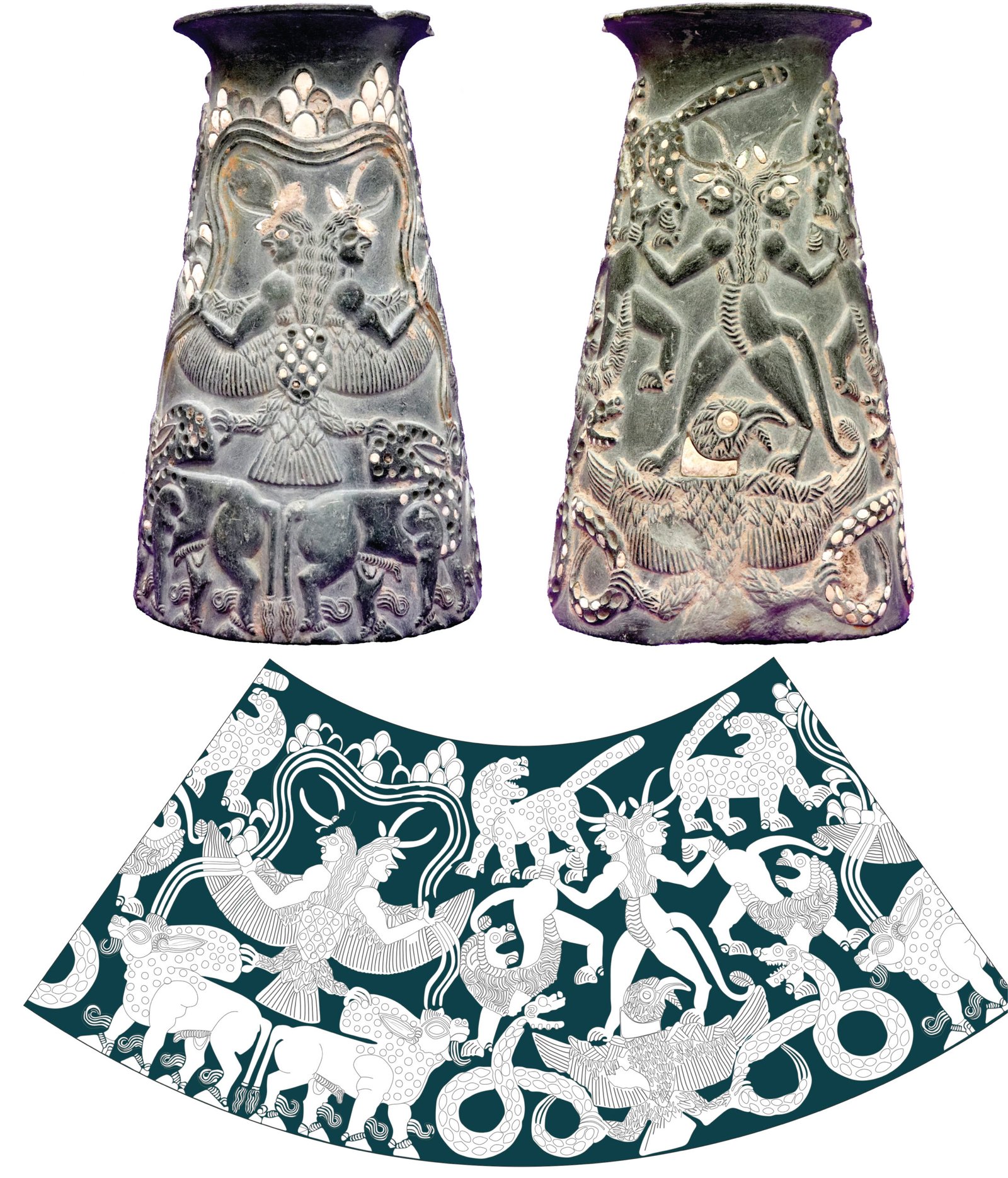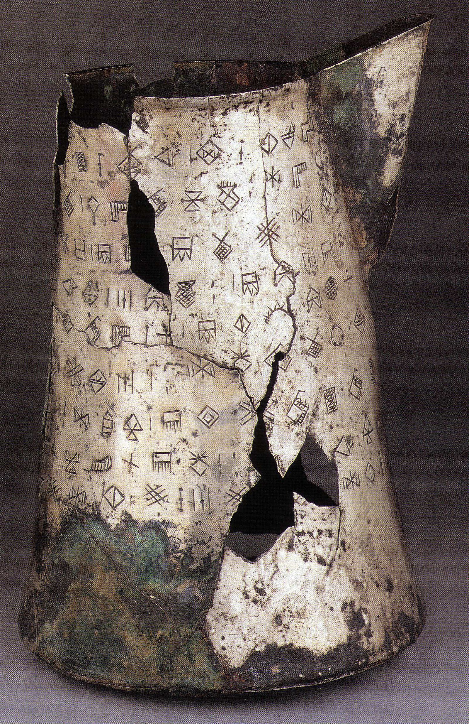 Parmi ces objets, il y avait trois vases en argent portant des inscriptions en élamite linéaire. À l’époque, je me souviens, beaucoup de gens étaient sceptiques quant à leur authenticité et se méfiaient, à juste titre à vrai dire, puisque ces objets ne venaient pas de fouilles ‘régulières’. Je me suis néanmoins intéressé à eux en me disant qu’il était dommage de les ignorer. Seule une photo avait été publiée pour chacun de ces trois vases et je n’avais donc accès qu’à la moitié des textes qui en faisaient le tour.